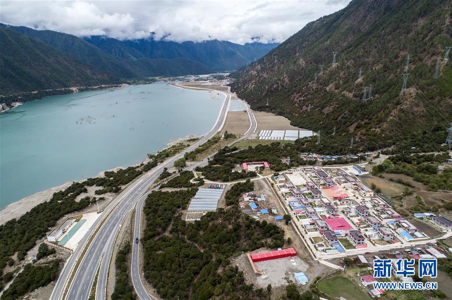 这是位于川藏公路旁的久巴村及其周边草莓种植大棚(5月14日,无人机拍摄)。 新华社记者 李鑫 摄