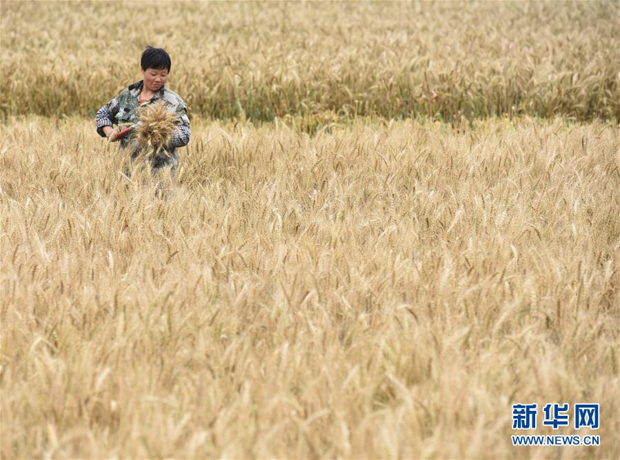 5月14日,贵州省毕节市大方县长石镇杨柳村村民在收获小麦。 眼下,贵州省毕节市大方县长石镇万余亩小麦进入收获期,村民们抓紧抢收,田间地头一片丰收景象。 新华社发(杨涛 摄)