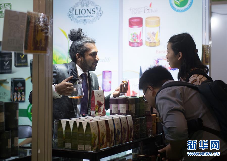 5月15日,参观者在一家斯里兰卡展商的展台前选购茶叶。 当日,第三届中国国际茶叶博览会在浙江杭州开展。本届国际茶博会展示展销总面积7万平方米,吸引国内外参展商总计1500余家。 新华社记者 翁忻旸 摄