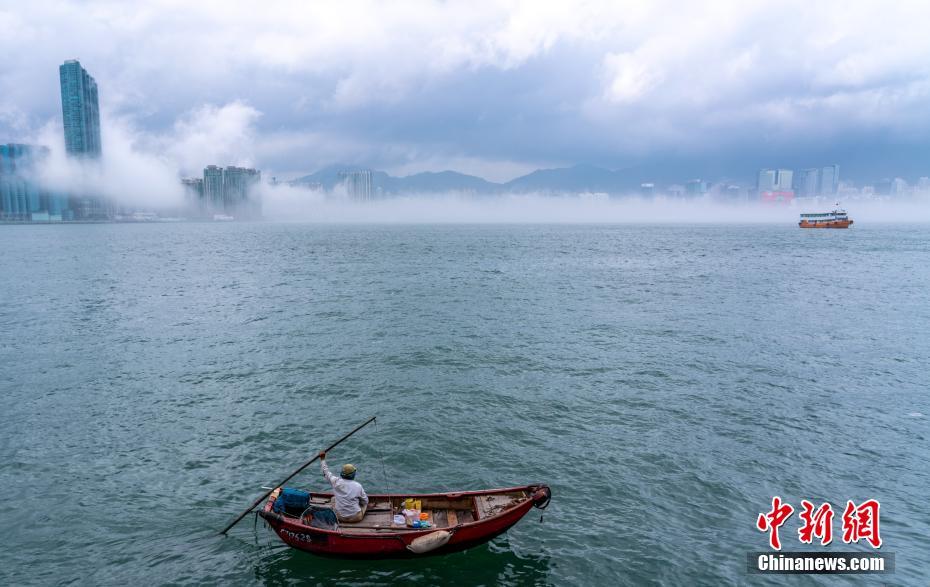 香港维多利亚港现平流雾 宛如“海市蜃楼”
