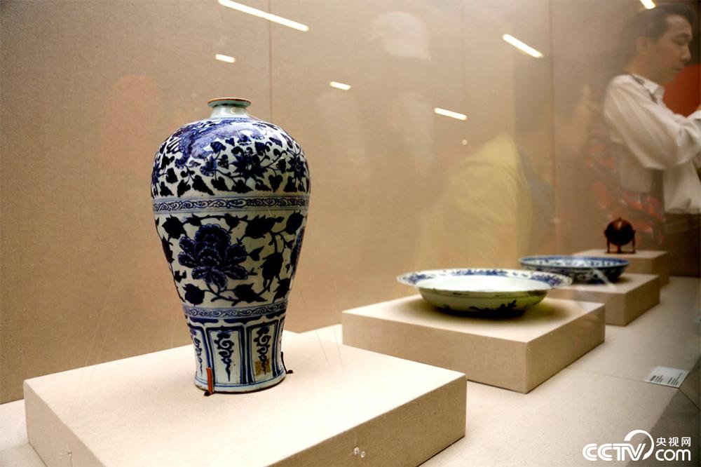 伊朗国家博物馆馆藏的元青花梅瓶和两件明青花盘。其中元青花梅瓶是元代青花瓷的精美之作,该瓶的肩部和足部均刻有卡塔查盖的字样,表明该瓶出自萨法维时期苏菲派主要领袖萨菲阿德丁族长的陵墓,是萨法维国王阿拔斯一世从中国购买放入祖先陵墓,是当时中伊文化和商贸交流的见证。