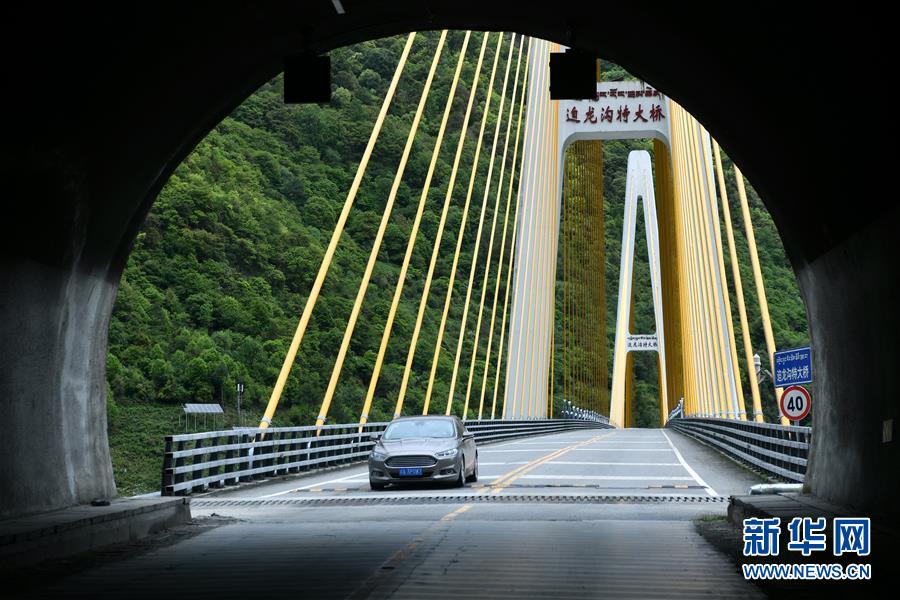 5月15日,一辆汽车从迫龙沟特大桥驶入帕隆2号隧道。新华社记者 李鑫 摄