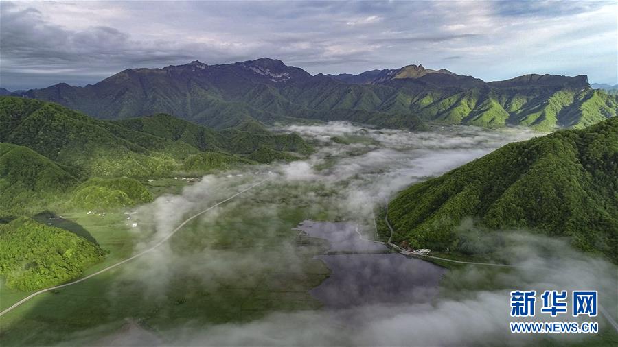 神农架大九湖高山湿地风光(5月16日无人机拍摄)。 在“华中屋脊”湖北神农架深处有一片高山湿地,一条小溪串起9个湖泊,故名“大九湖”。这里群山环绕,风光秀丽,宛如世外桃源。 新华社记者 杜华举 摄