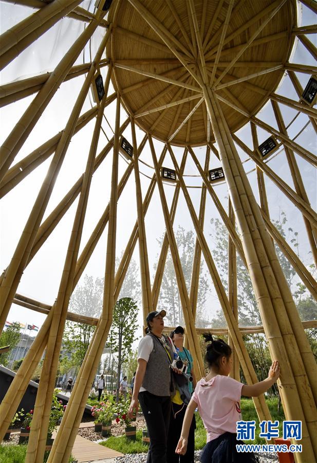5月16日,游人在北京世园会国际竹藤组织园参观。 当日,由国际竹藤组织主办的荣誉日活动在北京世园会园区的国际竹藤组织园举行。 新华社记者 李欣 摄