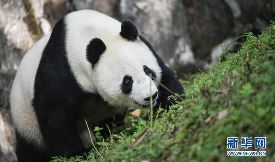 5月16日在中国大熊猫保护研究中心都江堰青城山基地拍摄的大熊猫“白云”。 当日,旅美大熊猫“白云”“小礼物”回到位于四川的中国大熊猫保护研究中心都江堰青城山基地。 新华社记者 薛玉斌 摄
