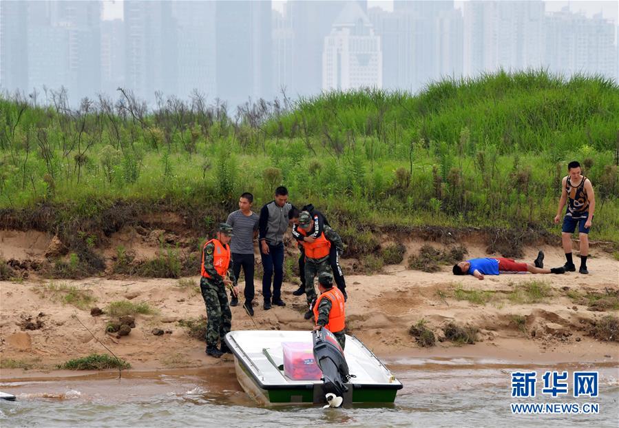 5月16日,在赣江南昌段,武警江西总队南昌支队船艇大队官兵进行转移受灾群众演练。新华社记者 彭昭之 摄