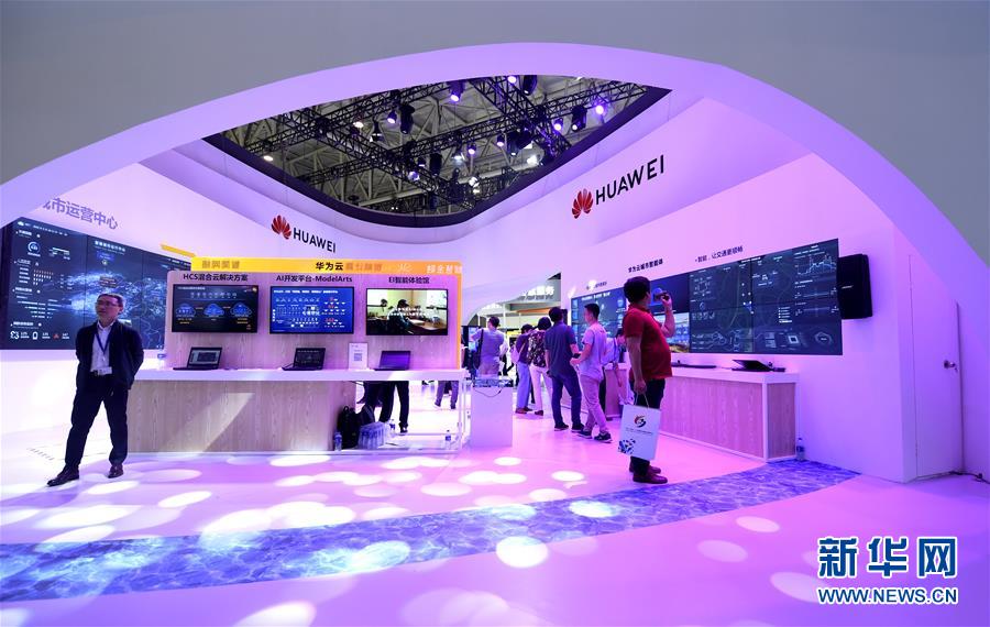 5月16日,在第三届世界智能大会智能科技展上,观众参观华为展台。 当日,第三届世界智能大会在天津开幕。大会智能科技展和智能体验活动向观众开放。 新华社记者 岳月伟 摄