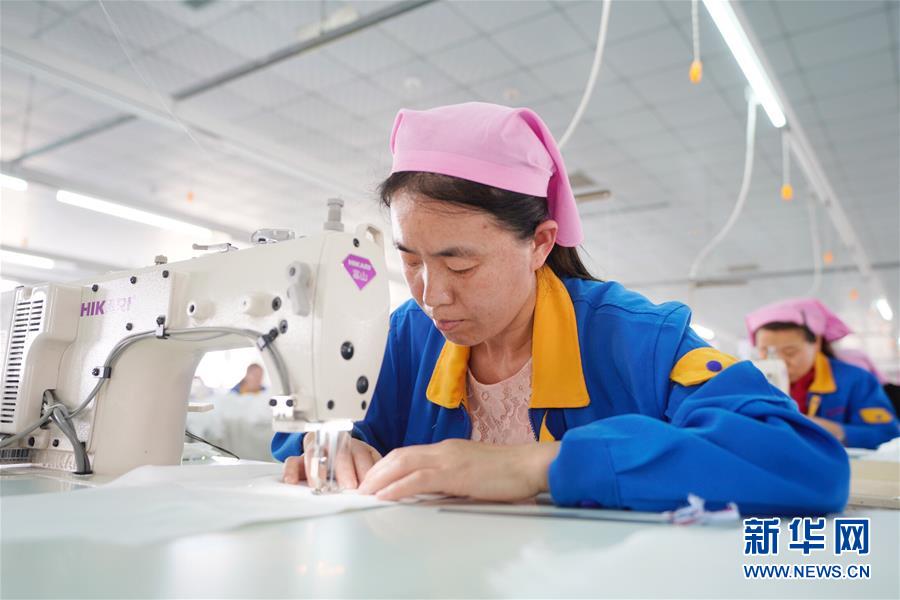 5月16日,盐山县庆云镇村民在凯瑞斯服装厂工作。该服装厂总部位于雄安新区容城县,为配合雄安新区产业转型升级,于2018年初来到河北省盐山县开设工厂。 新华社记者 邢广利 摄