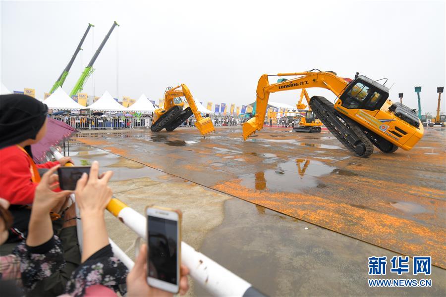 5月16日,观众在长沙国际工程机械展览会上观看挖掘机的“双人华尔兹”表演。 5月16日,在长沙举办的2019长沙国际工程机械展览会上,各类工程机械设备上演“大比武”,吸引了观众和客商的目光。据悉,本次展览会将持续到5月18日。 新华社发(陈泽国 摄)