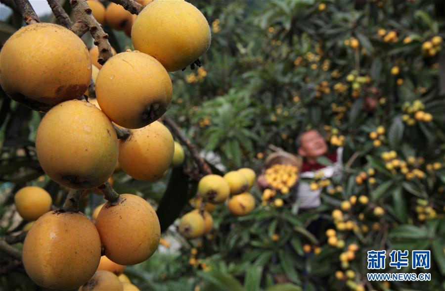 5月16日,贵州省毕节市黔西县素朴镇古胜村村民在采摘枇杷。 时下,贵州省毕节市枇杷进入收获期,村民忙着采摘枇杷出售,一片丰收景象。 新华社发(史开心 摄)