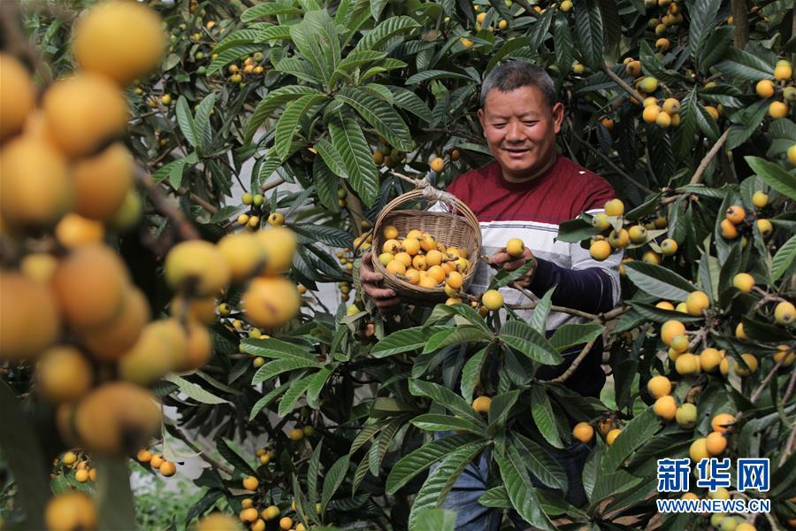 5月16日,贵州省毕节市黔西县素朴镇古胜村村民在采摘枇杷。 时下,贵州省毕节市枇杷进入收获期,村民忙着采摘枇杷出售,一片丰收景象。 新华社发(史开心 摄)