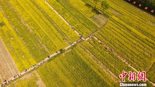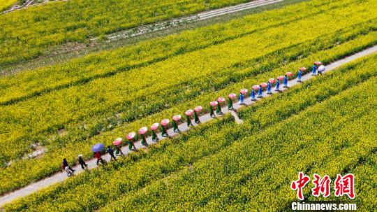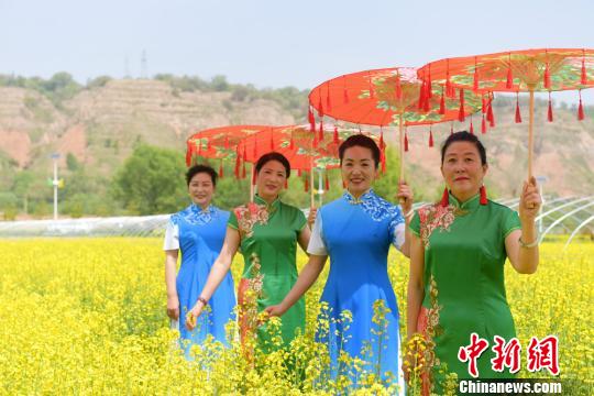 图为油菜花田里上演的旗袍表演。 韦德占 摄