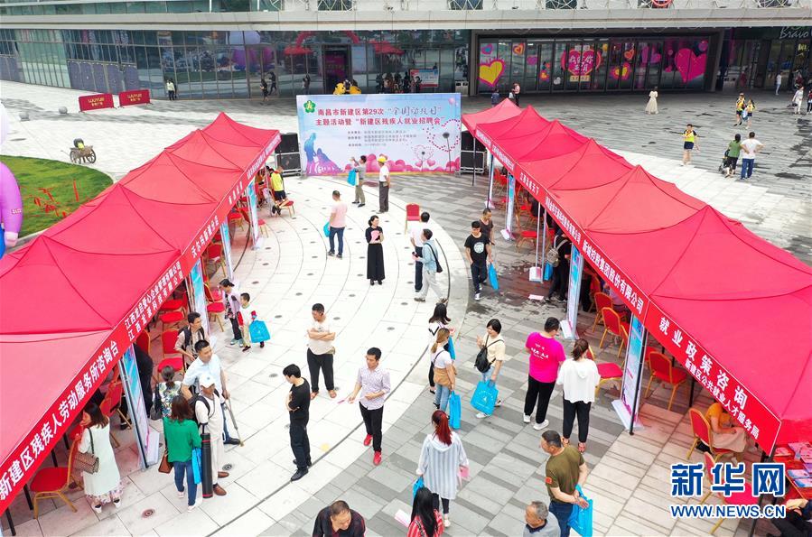 5月17日在南昌市新建区拍摄的残疾人就业招聘会现场(无人机拍摄)。 新华社记者 彭昭之 摄