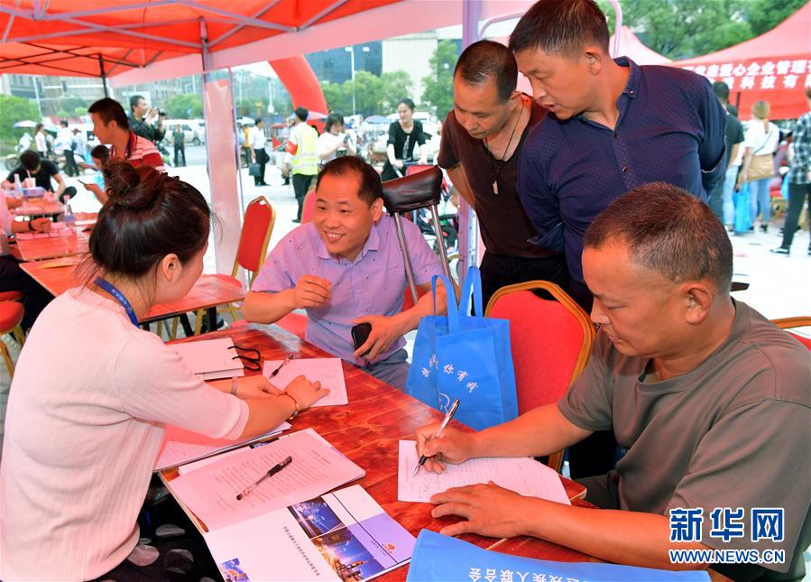 5月17日,求职者在招聘会现场咨询、填表。 新华社记者 彭昭之 摄