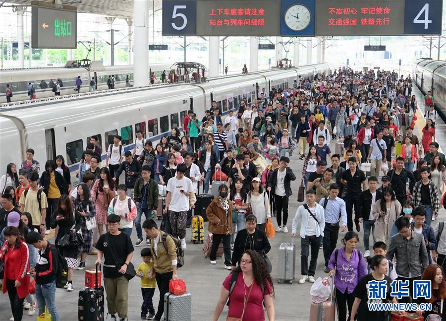 5月4日是五一假期最后一天,乘坐D6501次动车的旅客到达福州火车站。 新华社记者 林善传 摄