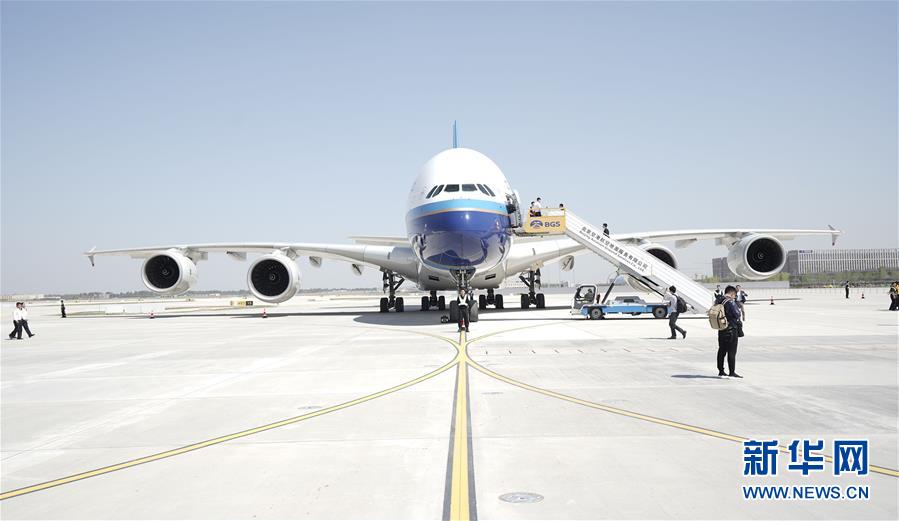 5月13日,北京大兴国际机场完成首次真机飞行验证,这是南方航空公司客机停靠在泊位。新华社记者 才扬 摄