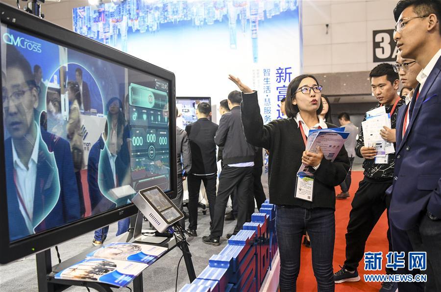 5月17日,一名参展商代表在向参观者介绍智慧健康服务体系系统。 新华社记者 王菲 摄
