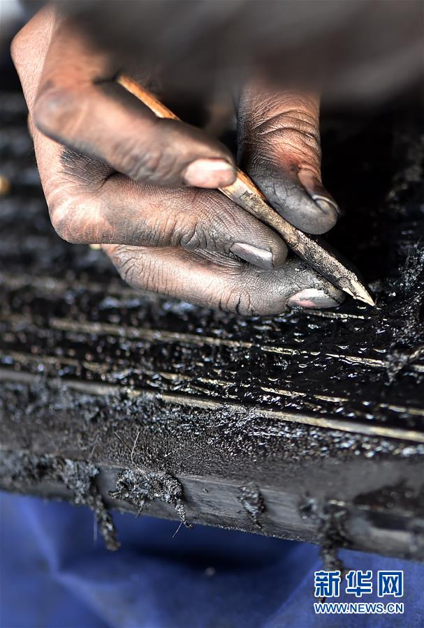 5月17日,来自拉萨市尼木县的清洗匠人对老木刻板进行清理。 新华社记者 觉果 摄