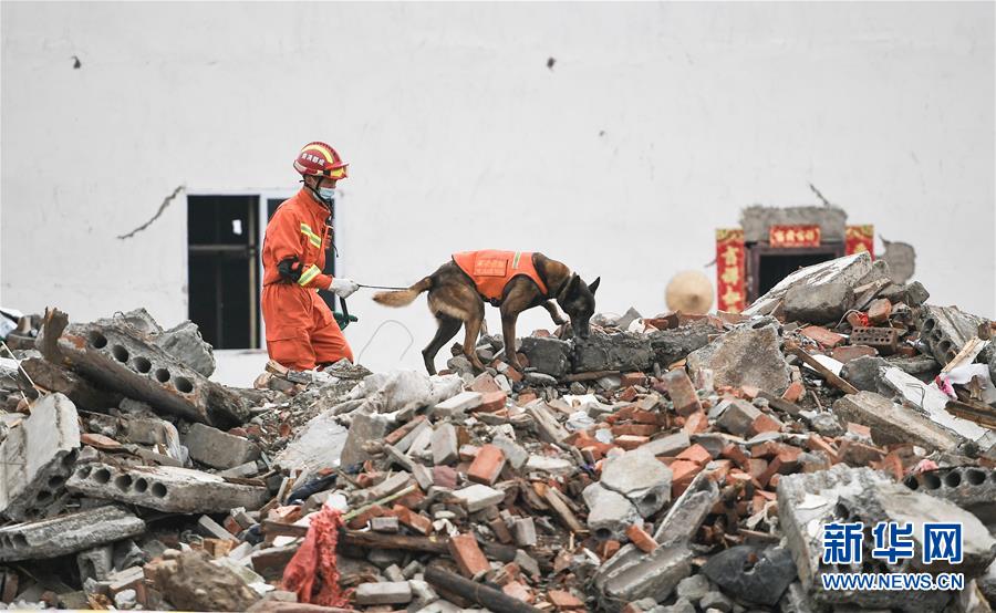 5月18日,消防员在进行废墟救援演练。 当日,四川2019年省级抗震救灾综合演练在成都市金堂县举行。 新华社记者 薛玉斌 摄