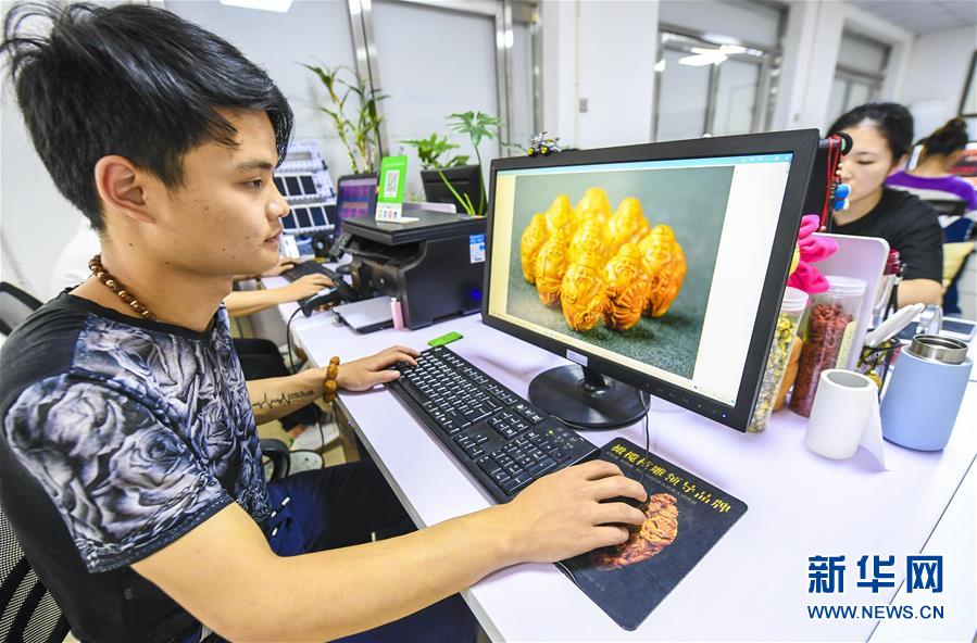 5月18日,永清县别古庄镇核雕企业工人在互联网平台销售核雕产品。 新华社记者 李晓果 摄