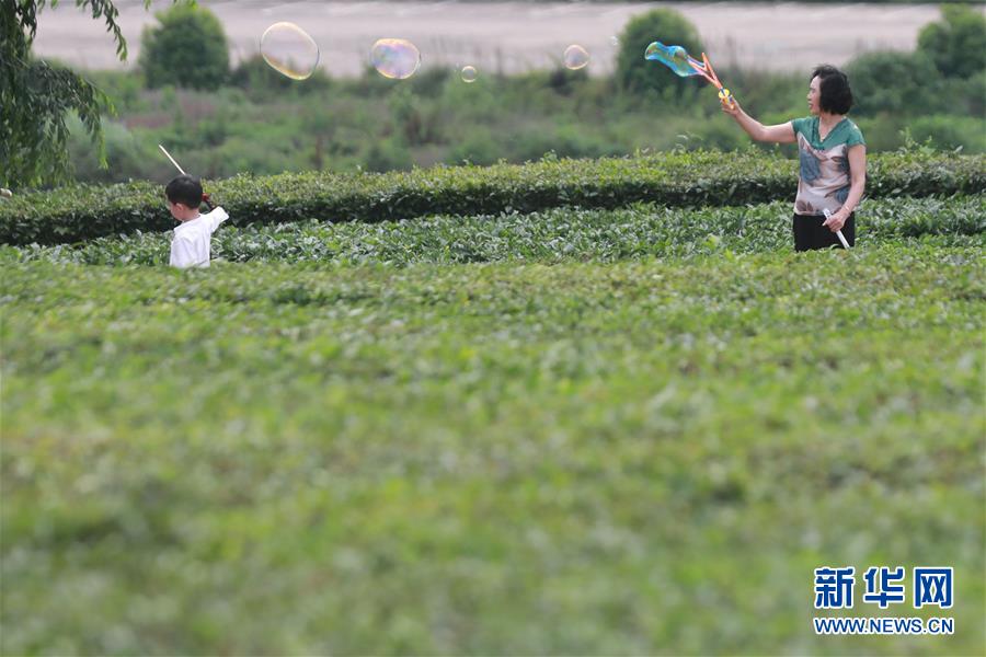 5月19日,游客在羊艾茶园内游玩。 初夏时节,位于贵州省贵安新区的羊艾茶园风景如画。 新华社记者 欧东衢 摄