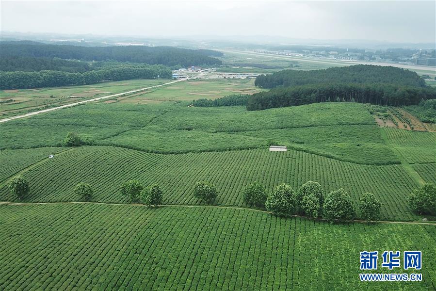 5月19日无人机拍摄的羊艾茶园风光。 初夏时节,位于贵州省贵安新区的羊艾茶园风景如画。 新华社记者 欧东衢 摄
