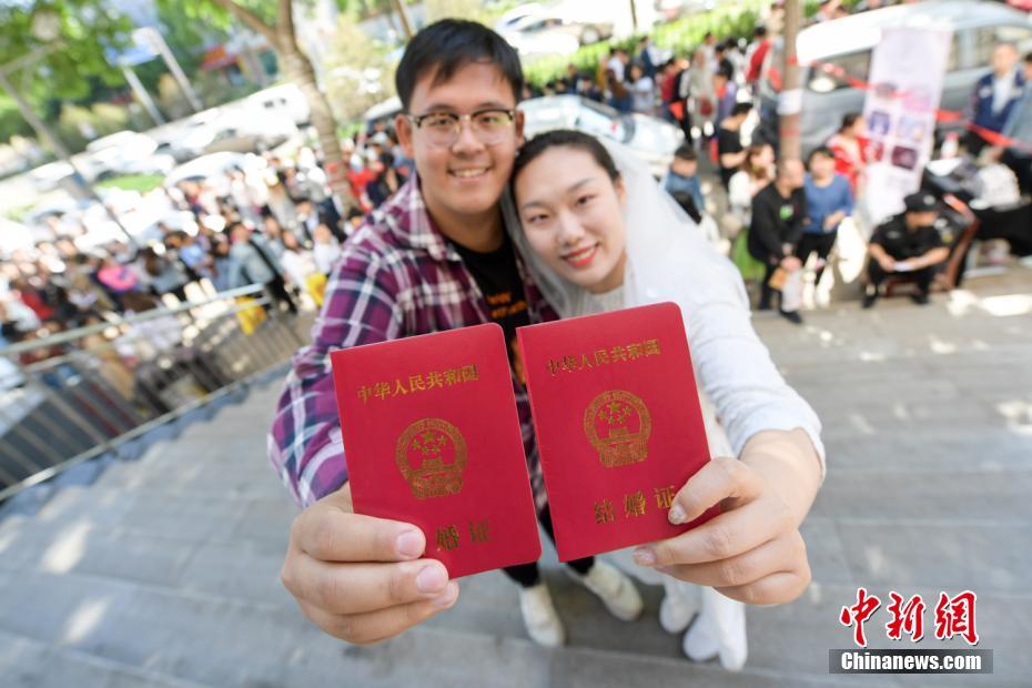 当天第一对领证新人凌晨3点就在门口排队。 武俊杰 摄