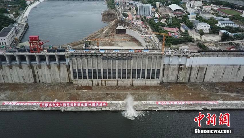 丰满大坝老坝曾于2018年12月12日进行了首次爆破。爆破的长度为18米、宽度为13.5米、高度为4.2米。5月20日上午,国网新源丰满水电站老坝预留的挡水坎被炸开了一个5米宽的缺口,松花湖水通过这个缺口缓缓涌向新建的丰满大坝,新坝和老坝间开始充水。丰满新坝于2014年7月开工,计划于今年10月建设完成。新坝为碾压混凝土重力坝,混凝土总量为276万立方米,采用的新技术解决了严寒地区碾压混凝土重力坝温度控制问题,混凝土强度及抗渗抗冻指标、断层坝段抗滑稳定性明显提高。据了解,目前丰满水库松花湖的水位是241.1米,离263.5米的正常蓄水位还差20多米。经过10到12天的充水,待老坝两侧水位达到同等高度后,将拆除老坝其他坝段挡水坎,水库开始整体蓄水。目前,电站主厂房已封顶,机电设备正在安装,首台机组拟于7月投产发电。丰满水电站历史上曾对东北地区的经济发展起到了至关重要的作用,重建后的丰满水电站其社会、经济和环境效益将明显提升。 图为丰满水电站老坝爆破后,建设了5年的新坝开始挡水,投入正常运行。 刘栋 摄