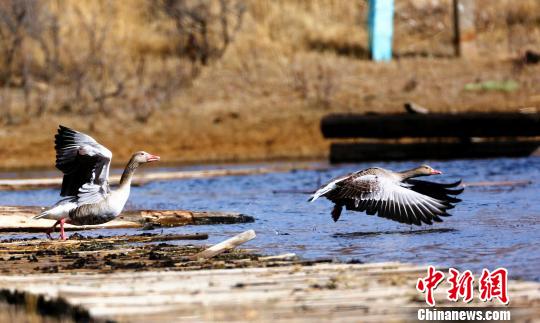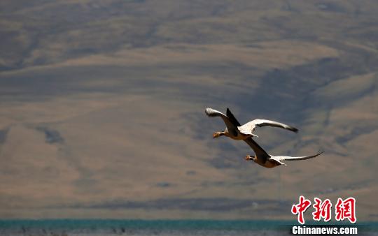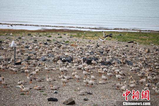 图为迁来青海湖的斑头雁。 侯元生 摄