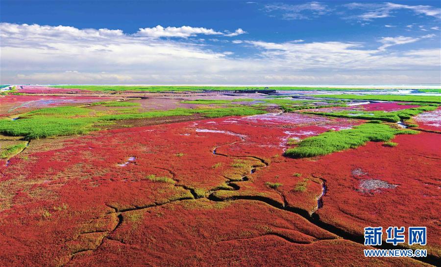 这是辽宁省盘锦市红海滩风光(2018年6月19日无人机拍摄)。 新华社发