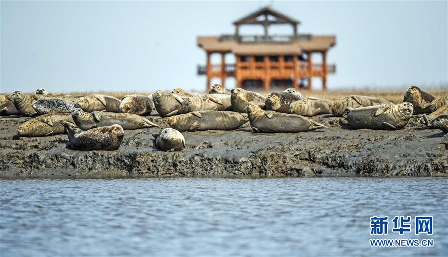 这是3月28日在辽宁盘锦辽河入海口三道沟海域拍摄的斑海豹。 新华社记者 潘昱龙 摄
