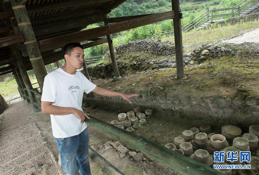 5月20日,林松在枫洞岩古窑址介绍古龙泉窑知识,这是他儿时经常玩耍的地方。 林松,1993年出生于浙江龙泉市大窑村。在古窑边玩耍长大的他在龙泉和景德镇接受了陶瓷专业教育,并跟随青瓷艺人学习多年。2014年林松在故乡龙泉开设了林松青瓷工作室,专注于古香炉的复刻。目前,林松共收藏了四五十款古龙泉香炉标本,并已复刻了二十多款。 摹古并不容易。林松说,要复刻古器物的精气神,从胎到釉到形都得细细琢磨,在烧成上反复尝试。他从古窑址旁取土制作胎釉原料,并在大窑村老家旁建起柴窑,希望通过努力捕捉到古龙泉青瓷的气韵。 新华社记者 翁忻旸 摄
