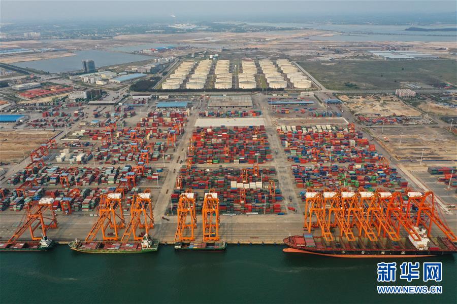 这是广西钦州保税港区集装箱码头(4月11日无人机拍摄)。 新华社记者 曹祎铭 摄