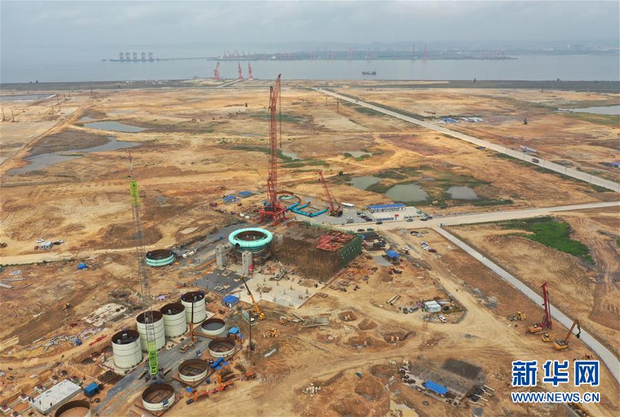 这是广西钢铁集团防城港钢铁基地项目施工现场(4月11日无人机拍摄)。 新华社记者 周华 摄