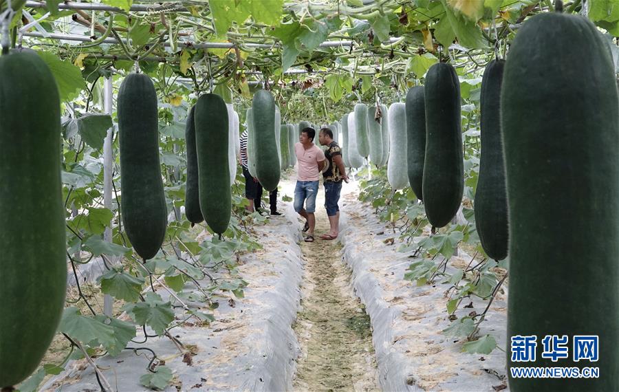 5月20日,人们在冬瓜展示区参观。 当日,2019年中国(广西)—东盟蔬菜新品种博览会在南宁开幕,国内外85家企业单位的千余个蔬菜优新品种参展,吸引人们前来“看菜选种”。 新华社发(喻湘泉 摄)