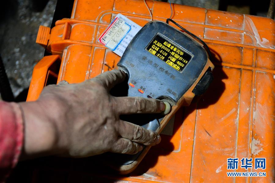 爆破员鲁元国准备按下起爆器(5月17日摄)。新华社记者 丁磊 摄