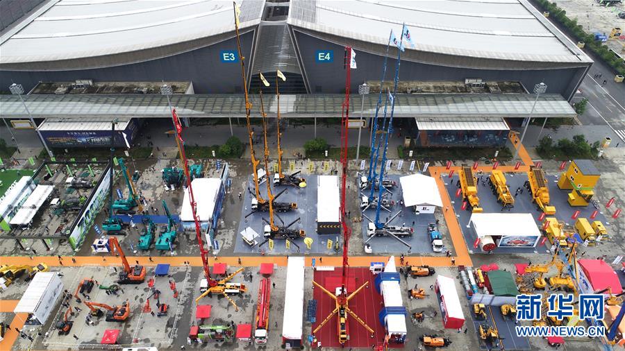 这是5月15日无人机拍摄的长沙国际工程机械展览会现场。新华社发(陈泽国摄)