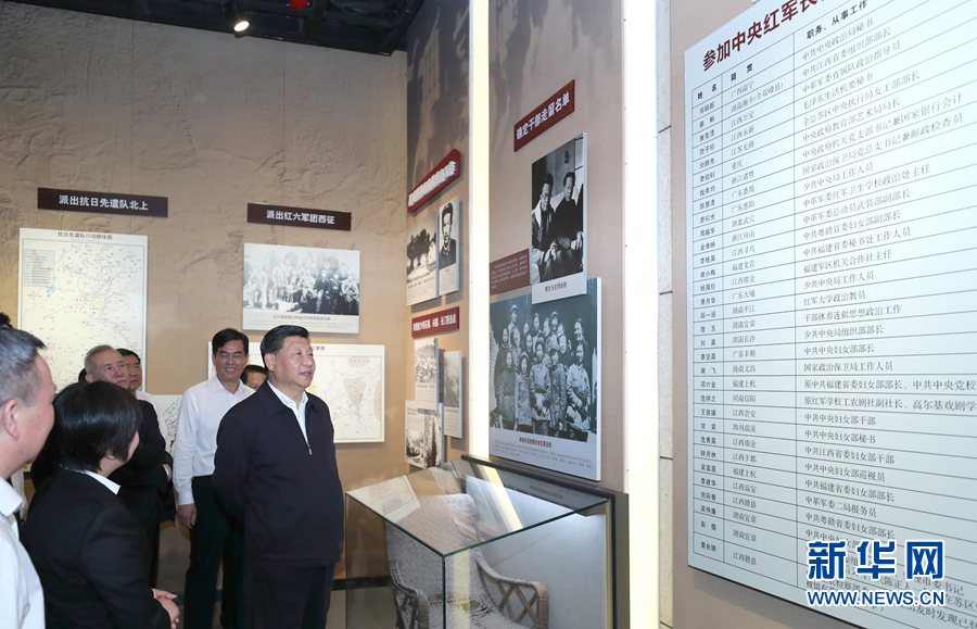 5月20日,中共中央总书记、国家主席、中央军委主席习近平深入赣南老区考察调研。这是习近平在江西省于都县中央红军长征出发纪念馆参观。 新华社记者 鞠鹏 摄