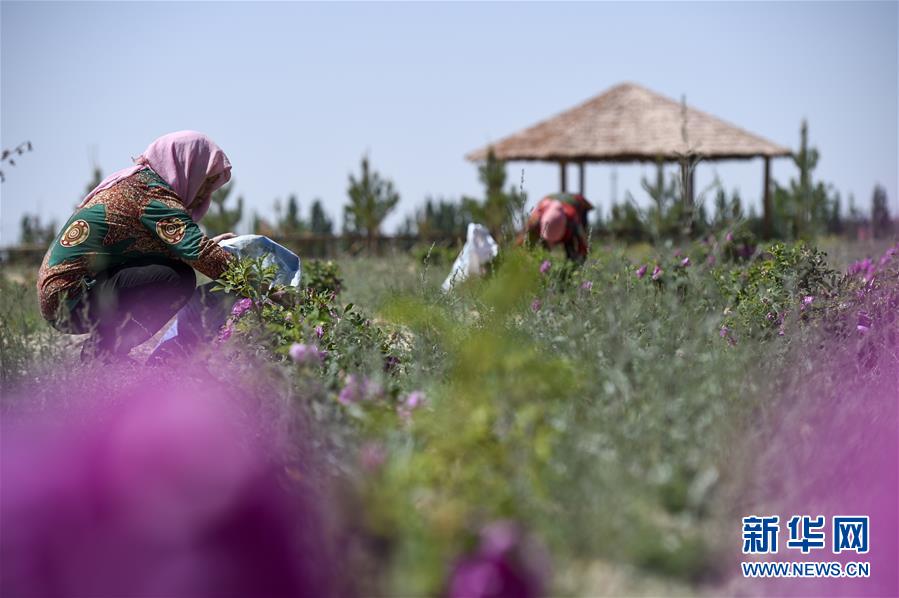 黄土高原玫瑰花采摘忙