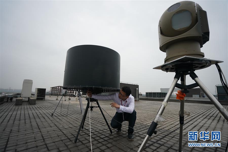 在位于南京的中国电科第14研究所,科研人员在调试“蜘蛛网反无人机系统”(4月23日摄)。 新华社记者季春鹏摄