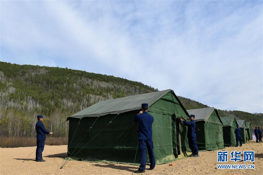 5月21日,在夏季驻防点,森林消防员在固定帐篷。 日前,内蒙古森林消防总队大兴安岭支队首批近百名森林消防指战员,深入大兴安岭北部原始林区——乌玛公路零公里,进行每年为期三个月的夏季驻防。夏季时节,原始林区易发生雷击火等森林火灾,夏季驻防能及时应对突发火情。 新华社记者 刘磊 摄