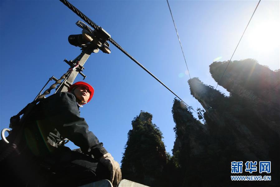 【图片故事】湖南张家界:“90后”索道检修工 高空巡检保平安