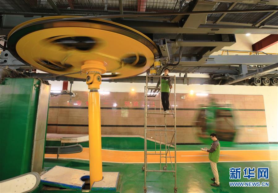 5月22日晨,谷和利(左)和同事对索道进行开机早检,为运行作准备。 新华社发(吴勇兵 摄)