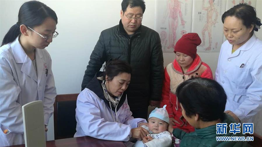 刘桂芝(左二)在长治市妇幼保健院坐诊(资料照片)。 新华社发