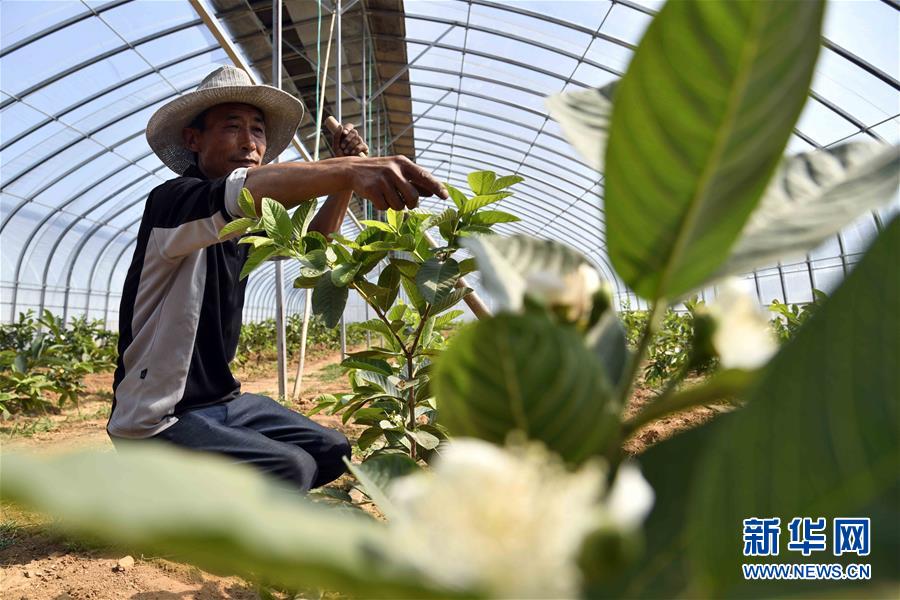 5月22日,水泉峪村村民在大棚里管护蔬菜。新华社记者 郭绪雷 摄