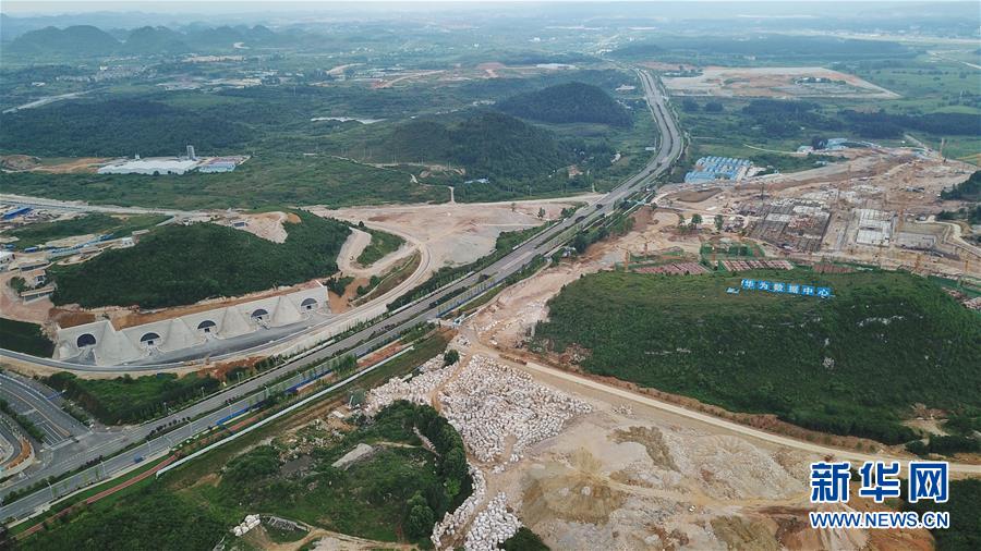 这是5月19日无人机拍摄的贵州省贵安新区“华为云”数据中心建设现场(以道路为界右)和腾讯贵安七星数据中心(左)。 作为全国首个国家级大数据综合试验区,贵州加快推动大数据与实体经济、社会治理、民生服务、乡村振兴的深度融合,给当地民众生产、生活方式带来显著改变。数据显示,贵州大数据企业已达9500多家,集聚了一大批世界知名企业。中国信息通信研究院公布的《中国数字经济发展和就业白皮书(2019年)》指出,贵州数字经济增速超过20%,数字经济吸纳劳动力增速达18.1%,两项指标均名列全国第一。大数据正助力贵州乘“云”而上。 新华社记者 欧东衢 摄