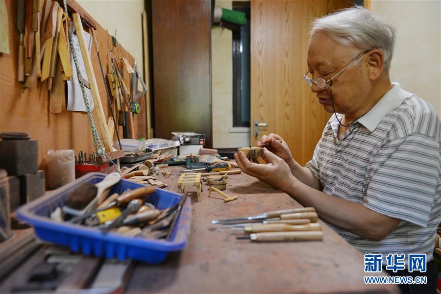 5月22日,陈和生在南京的工作室制作“老物件”。 今年70岁的陈和生是一个老南京人,他对小时候南京的市井生活印象非常深刻。退休后,他捡起自己一直以来的爱好木工活,开始用木料做农具、生活用品等“老物件”的微缩模型,想以此留下一些过往生活的记忆。没有师父,没有图纸,陈和生自学成才,10年来,他一共制作出了170余件微缩模型,还因此获得了“南京市工艺美术大师”的称号。 新华社发(方东旭 摄)