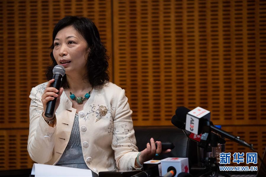 5月22日,澳门特区政府文化局局长穆欣欣在活动上作介绍。 当日,“粤港澳媒体湾区行”记者团澳门进行最后一天的行程,走进澳门青年创业孵化中心和澳门艺术博物馆,深入了解澳门融入大湾区建设的新进展和新气象。 新华社记者 张金加 摄