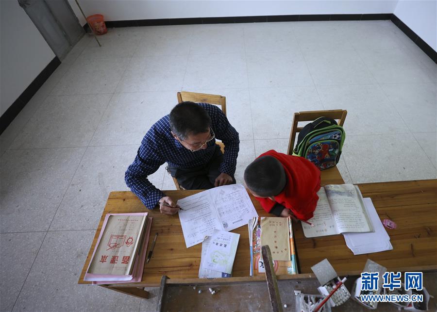 江西省瑞金市大柏地乡杨古村杨古小学的老师杨柳(左)在给8岁的杨金意辅导功课,杨金意是校内目前唯一的学生(5月7日摄)。 新华社记者 兰红光摄