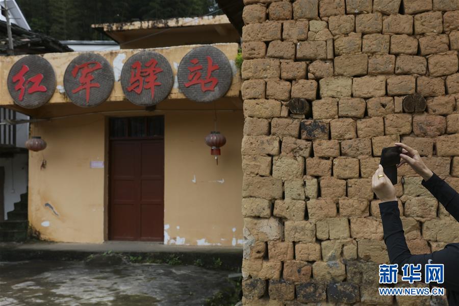一名游客在红四军——柏地战斗战场遗址内拍照。如今,红四军——柏地战斗战场遗址旁建起了“红军驿站”,供游人休憩。1929年,红四军在该地伏击了国民党军刘士毅部,被陈毅称之为“红军成立以来的最有荣誉之战争”。1933年,毛泽东重过大柏地时,写下《菩萨蛮·大柏地》这一著名诗篇(5月7日摄)。 新华社记者 兰红光摄